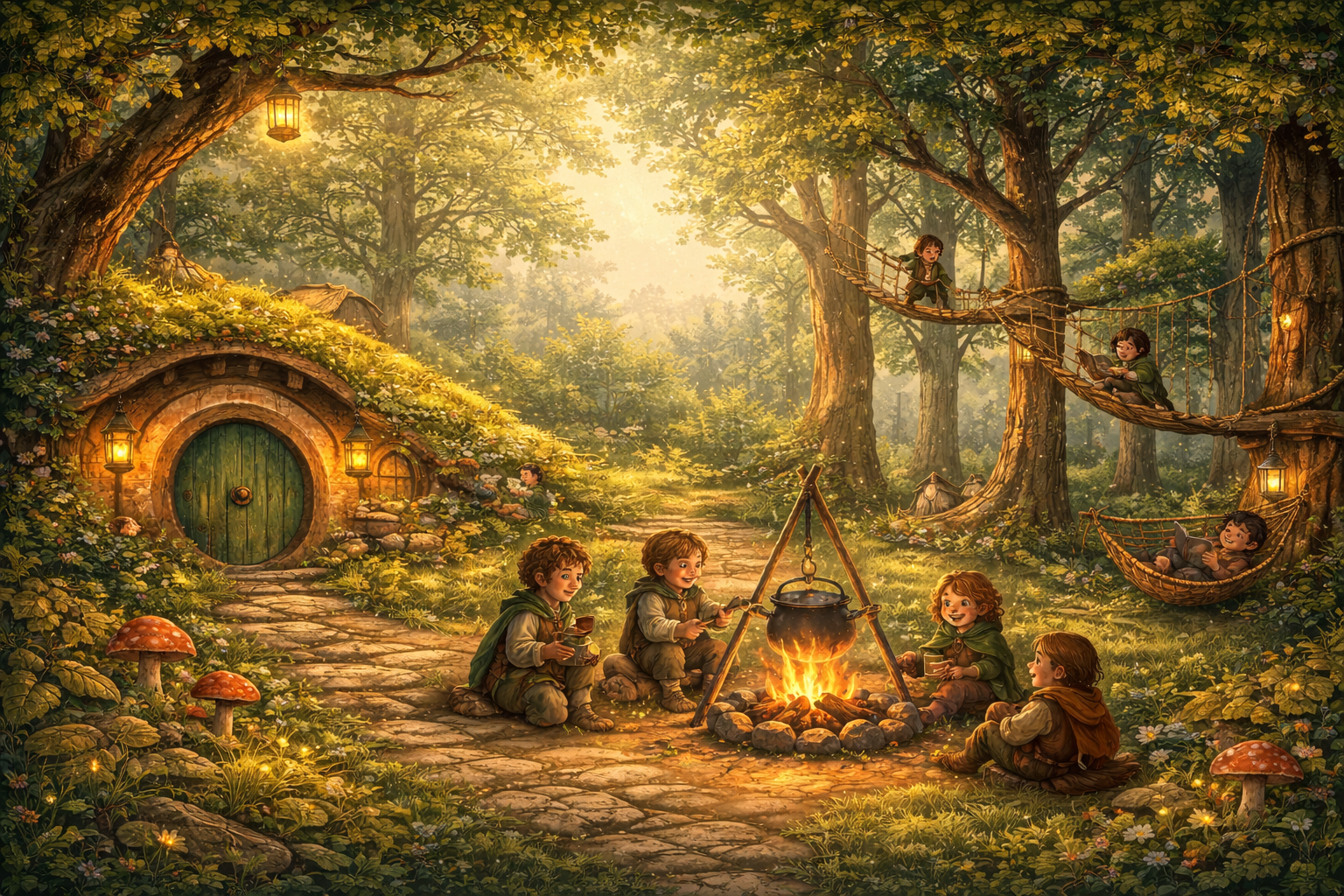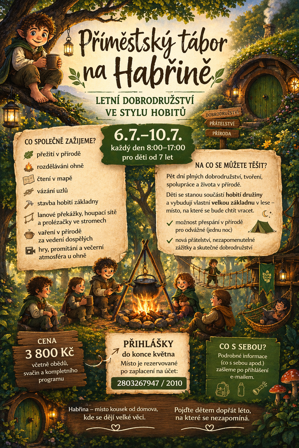 Během pěti dnů společně vybudujeme velkou hobití základnu v lese – místo, kam se bude chtít vracet.